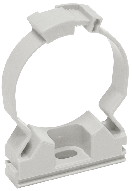 Пластиковый хомутный держатель для фиксации гофрированных труб диаметром до 20 мм. Устанавливается на стены, потолки и другие поверхности. Цвет — серый.