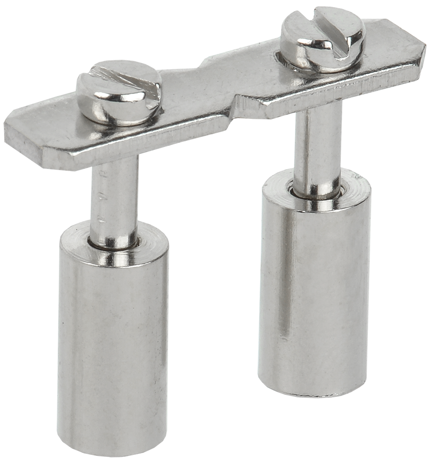 Устанавливаются в центре клеммы в соответствующие пазы токоведущих пластин путем ввинчивания соединительного винта в шину.
